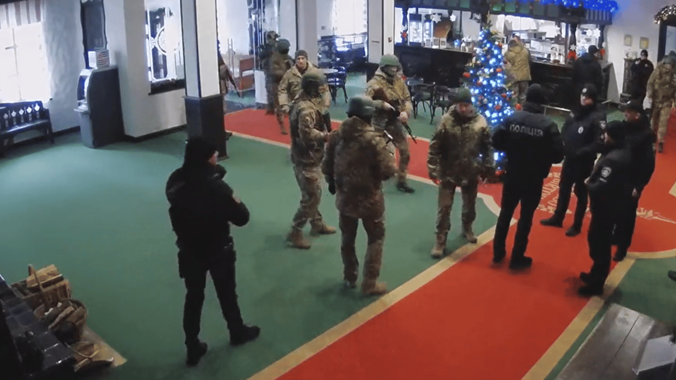 Зазначається, що 7 грудня до комплексу вдерлись "декілька десятків невідомих осіб у балаклавах та у військовій формі з автоматами", не пред'явивши документів. Вони погрожували працівницям закладу та відвідувачам, серед яких діти, жінки та люди поважного віку. Зокрема, застосували фізичну силу до директора комплексу у відповідь на його прохання показати документи та нанесли тілесні ушкодження адвокату закладу, коли він фіксував цю подію на відео.